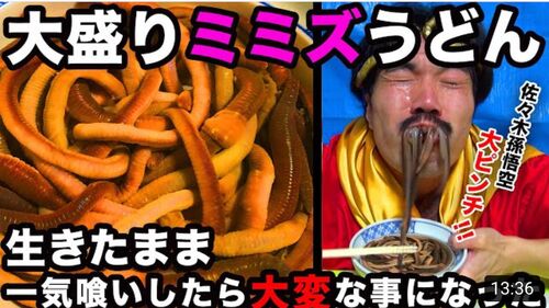 今日は佐々木孫悟空チャンネルを見ました。 今回は、ミミズうどんを食べる動画。 釣りのエサ用のミミズを大量購入した孫悟空。 なんと、48匹もいた。 それを土から掘り出し土抜きを行う。 めっちゃウンコ出てますかやん… 土抜きして、水につけること1時間。 …